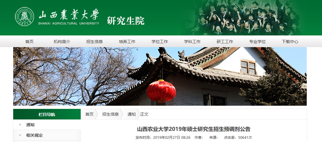 山西農業大學是一所具有110年歷史文化傳承的著名學府,全國重點大學,山西省人民政府與農業部共同建設的省部共建高校,全國首批深化創新創業教育改革示范高校、國家中西部基礎能力建設高校、山西省綜合改革試點高校。2019年我校碩士研究生招生部分專業仍有調劑空間,歡迎全國各地符合國家調劑政策的優秀考生(含退役士兵)來我校繼續深造。為方便2019年碩士研究生考生調劑報考山西農業大學,現將我校接受調劑的有關要求公布如下。