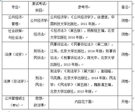 公共經(jīng)濟管理、社會政策與社會法、法律碩士(法學(xué)、非法學(xué))、公共管理碩士(MPA)復(fù)試加試課目、外語成績、綜合面試直接以100計算。
