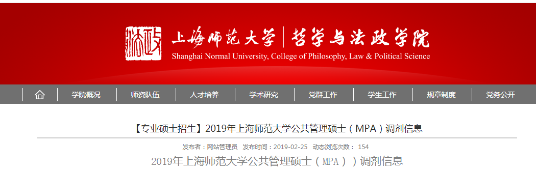 以上就是小編整理的“MPA接受調劑的院校 | 上海師范大學2019年接收MPA調劑的通知”的全部內容,更多關于MPA院校調劑信息,盡在“考研調劑”欄目,祝大家考研成功!