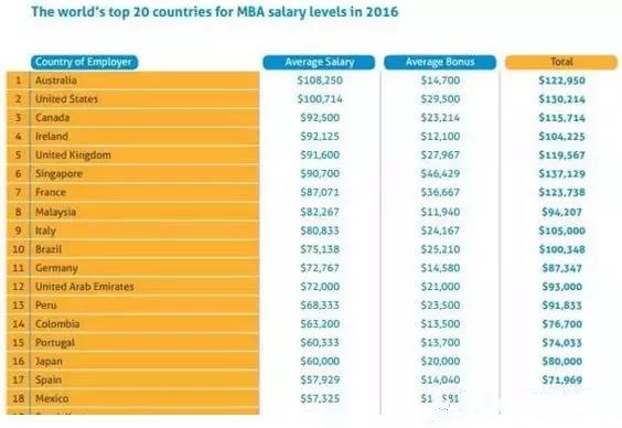澳洲MBA畢業(yè)生的平均工資世界第一。有圖有真相!
