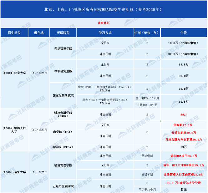 北理發布的2021年MBA招生說明中,給出了今年學費公示。