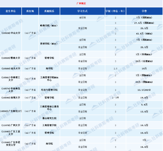 注:以下表格標紅部分是2021年最新學費,其他參考2020年招生簡章,僅供參考!