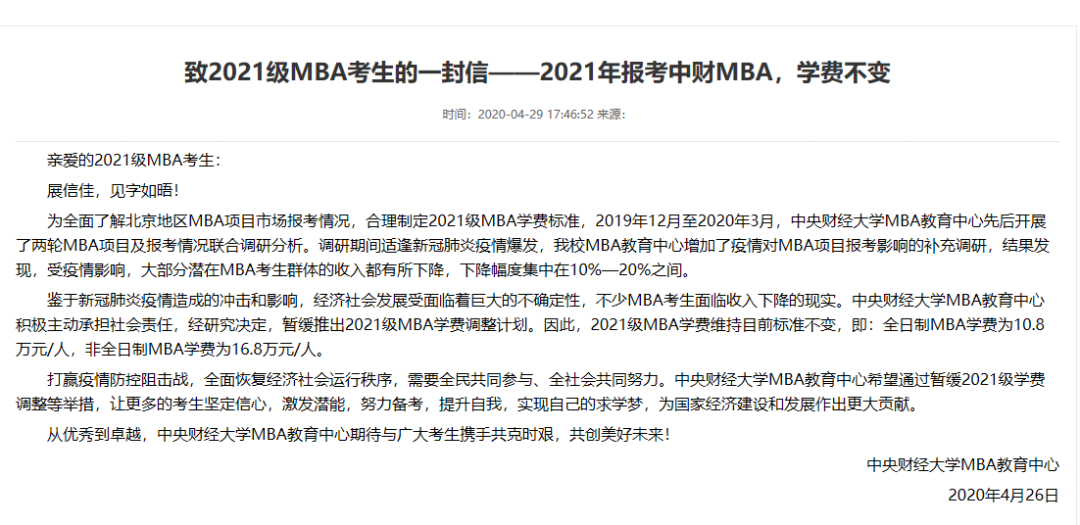 另外,中財今年很人性化,依然維持去年的學費收費標準。即:全日制MBA學費為10.8萬,非全為16.8萬。