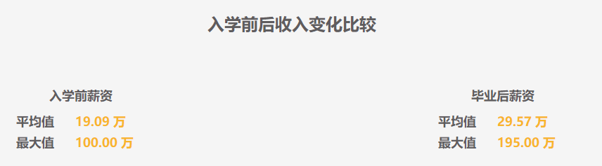 《2017屆浙大MBA學生概況》,入學后平均薪資提升了10萬,最大值由100萬增加到195萬。