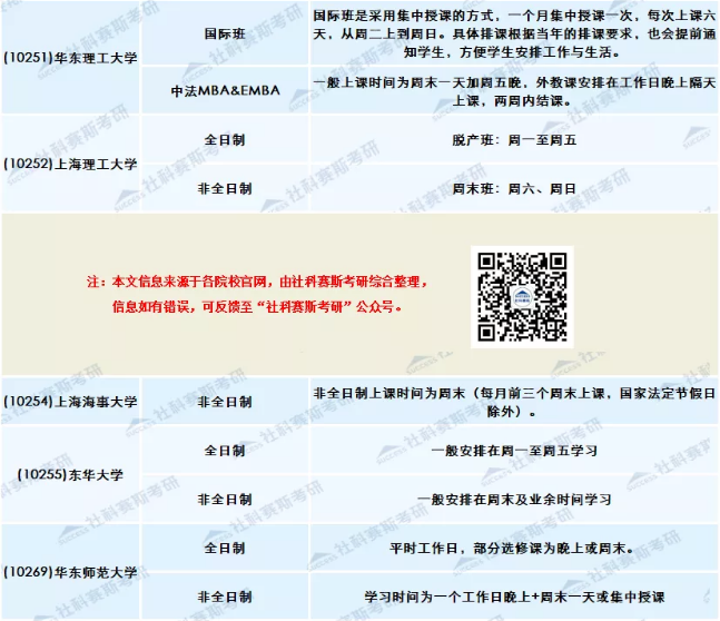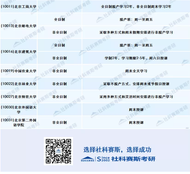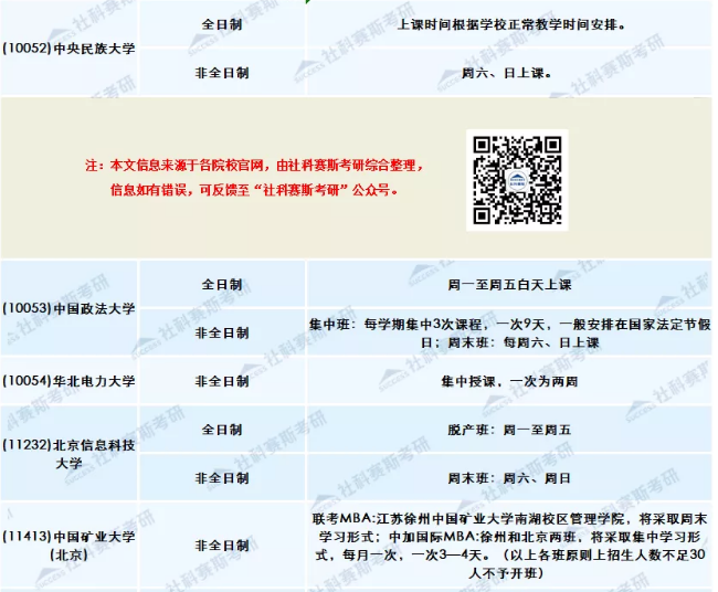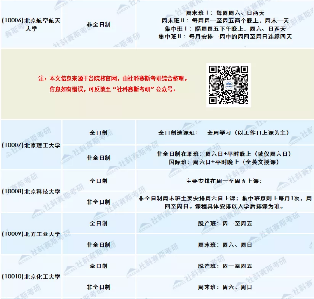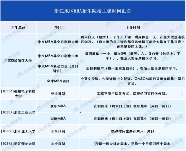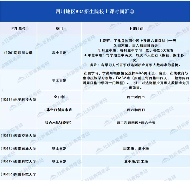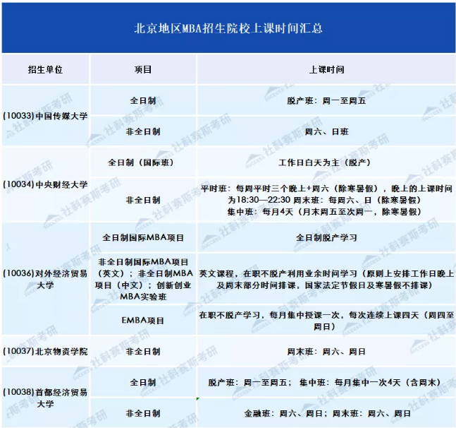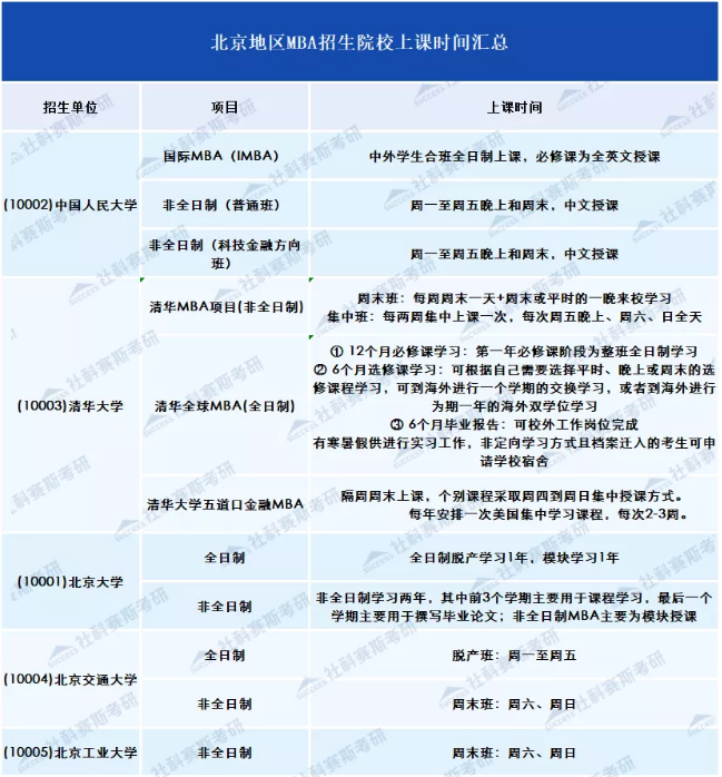 一般而言,全日制都集中在周一至周五上課,非全日制采取集中上課、周末上課、工作日晚上+周末的形式,或者就是采取其他更為靈活的方式。每個學校詳細信息,往下看。
