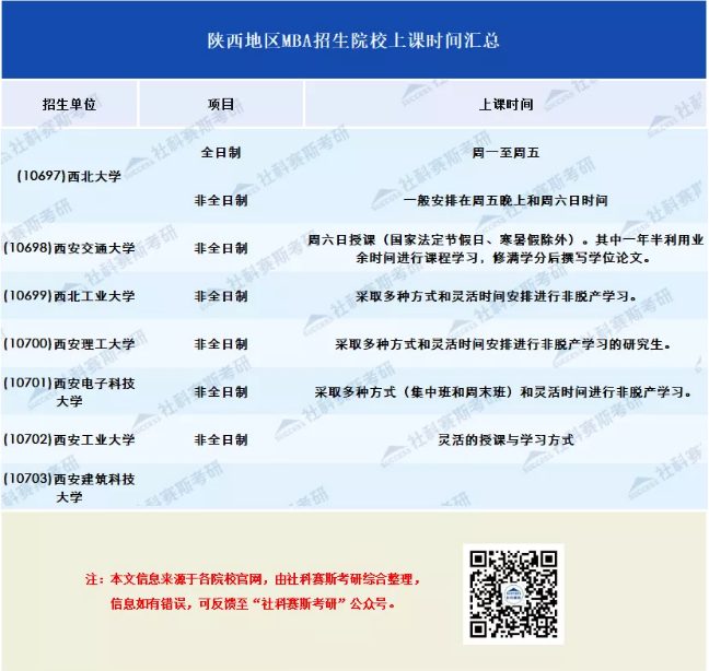 以上就是今天分享的關于“2021年MBA熱門高校授課時間匯總(北京、上海、廣東、湖北、四川、陜西、浙江)”的相關資訊,請各位同學查收!后期更多院校信息更新請持續關注MBA備考網,小編會第一時間為大家分享考研信息動態!