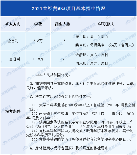 2021MBA項目基本招生信息