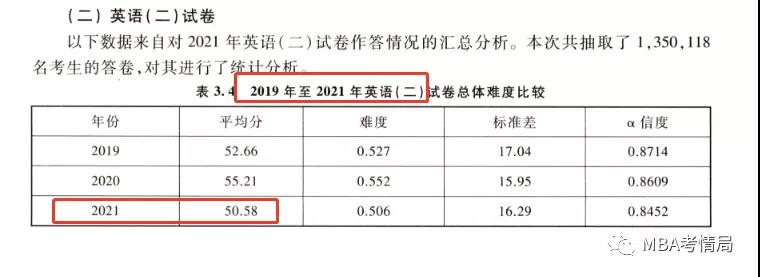 據《2022高教版 全國碩士研究生招生考試 英語(一)、英語(二)考試分析(非英語專業)》,19考研-21考研的英語平均分數已公布。(數據來源于教育部考試中心)