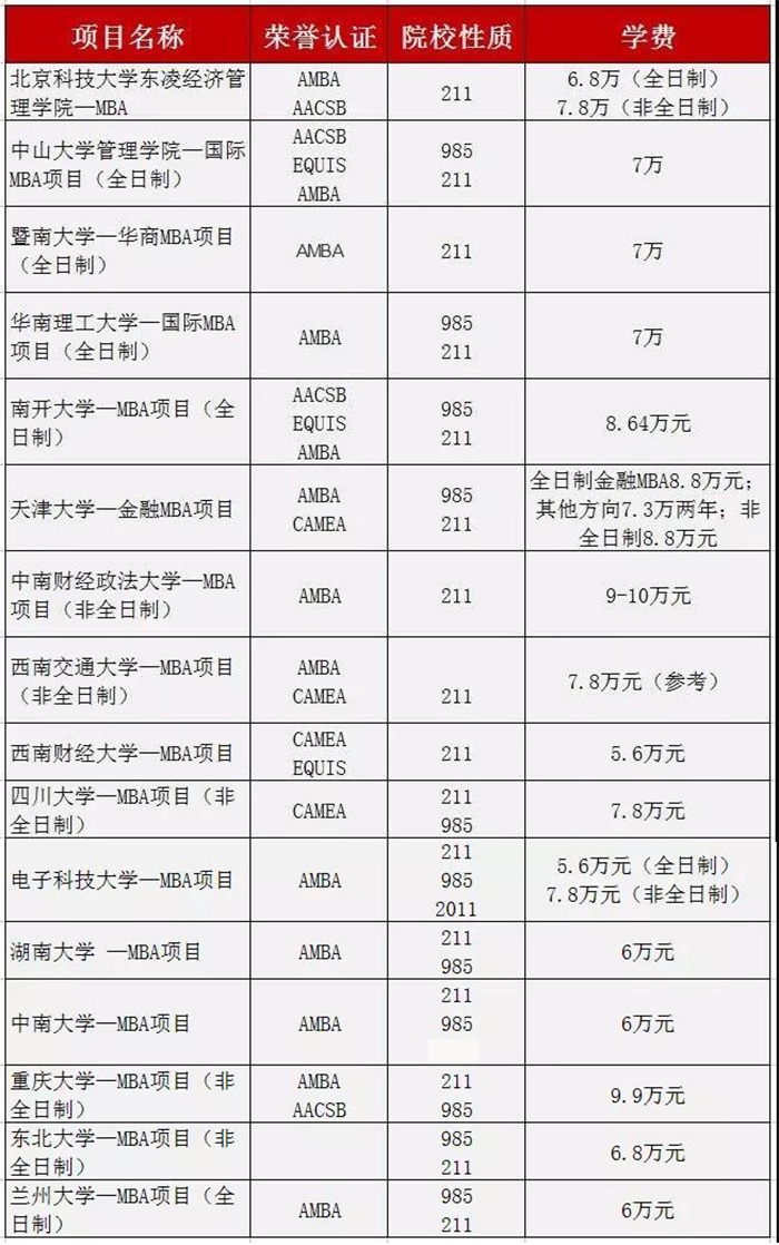 其實(shí)不是所有的商學(xué)院都那么高冷,也有很多獲得國(guó)際認(rèn)證、且自身是211、985的商學(xué)院MBA項(xiàng)目學(xué)費(fèi)還是讓人非常能接受的!