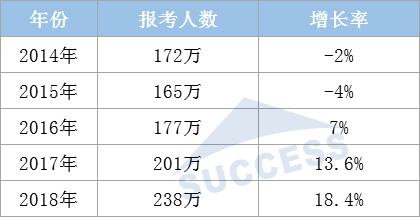 導讀:我國碩士研究生報名人數整體呈上升趨勢,2014年起連續兩年下跌,到2016年止跌回升,2018年報考人數達到238萬,報名增長率達到18 4%。