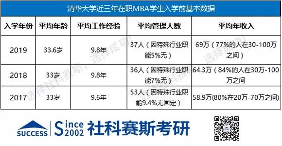 你關心的你的條件是否符合,我們從清華大學官網公布的《2019級在職MBA學生入學前基本數據》來看一下。此處,需要注意的是,以下數據為平均值,僅做參考。