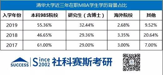 綜合三年的數據來看本科985院校占比接近一半,研究生(含博士)占比基本在三分之一,其他學歷也占有一定比例。優秀的學歷背景對于申請清華絕對是一個加分項,但不會是決定作用!