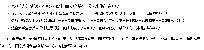 4.MBA:國民教育序列博、碩研究生畢業后工作2年或本科畢業后工作3年或專科畢業后工作5年及其以上(工齡計算至2020年8月31日)。報考國際班考生還須英語成績滿足以下條件之一: