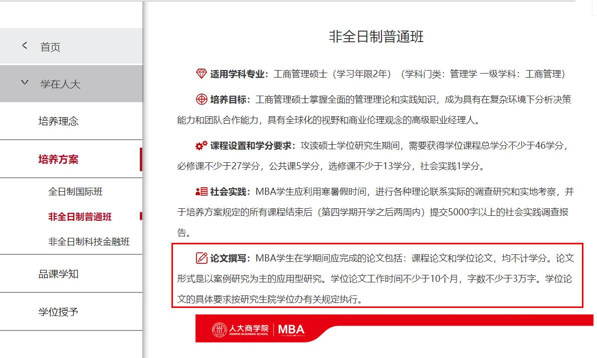 一些院校在MBA培養方案或MBA課程體系中還提到了論文撰寫要求。