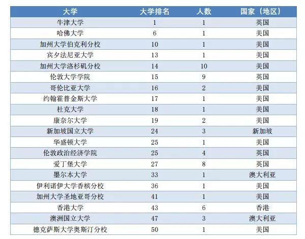 有58名畢業生赴 2017—2018《泰晤士報》排名前50的世界一流大學攻讀研究生。