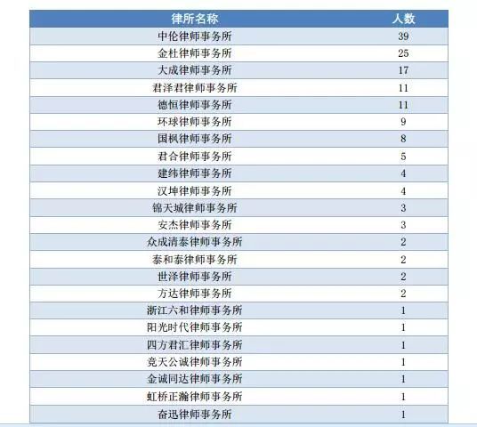 (畢業生到知名律所工作人數統計表)