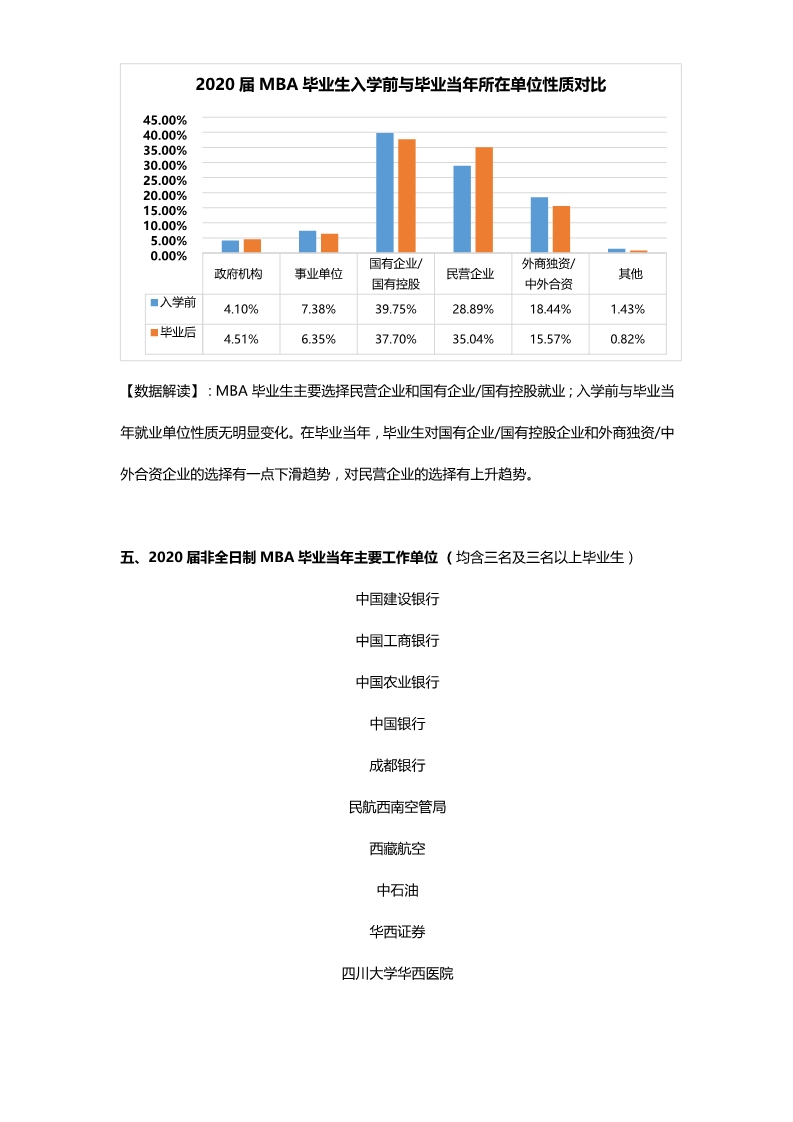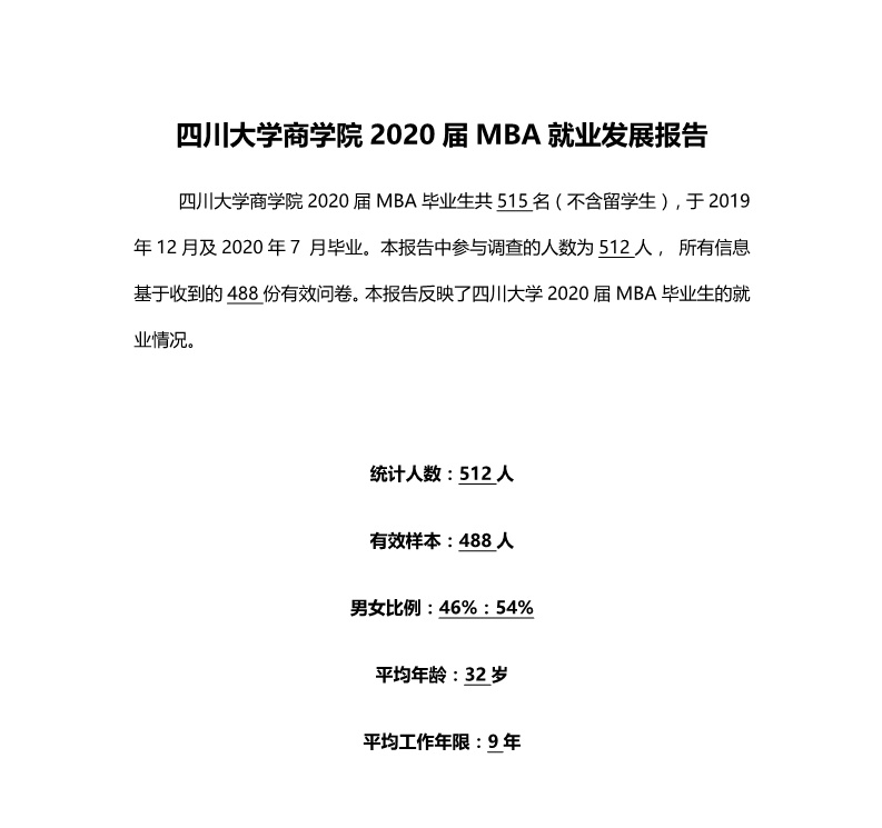 以上就社科賽斯MBA備考網小編分享“MBA就業數據分析:四川大學商學院2020屆MBA就業發展報告”的全部內容,希望在就業上對MBA考生有幫助,預祝考生順利上岸!