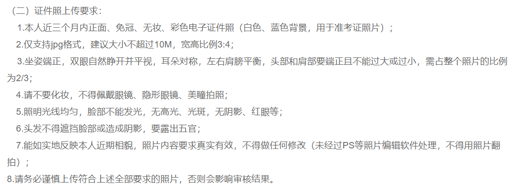 能如實地反映本人近期相貌,照片內(nèi)容要求真實有效,不得做任何修改(未經(jīng)過PS等照片編輯軟件處理,不得用照片翻拍);