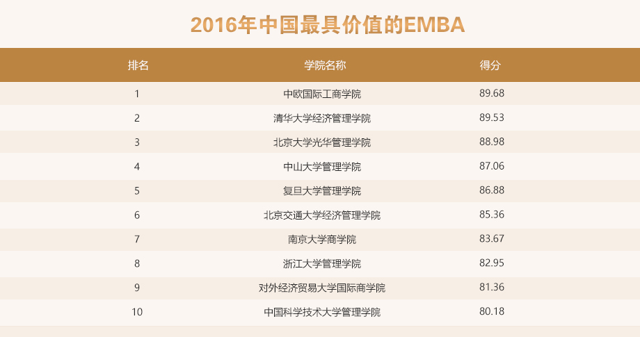 2016年中國最具價值的EMBA院校的榜單出來了,加油菌只截取了前10名,分別為: