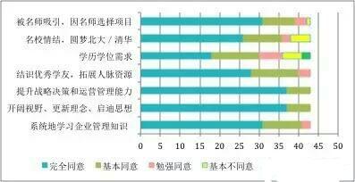 近日,小編對入2017年入讀北京大學(分數線,專業設置)光華管理學院、北京大學國家發展研究院、清華大學(分數線,專業設置)經濟與管理學院、清華大學五道口金融學院的50位EMBA進行了調研,了解大家申請EMBA項目的原因,本次調查共收到43位EMBA學生的反饋,總體情況如下: