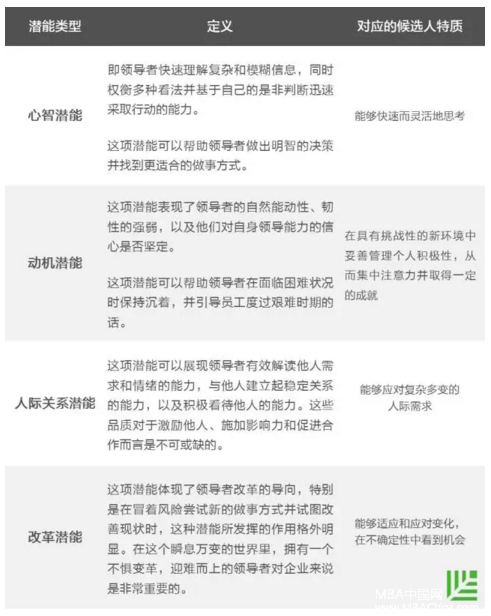 不同類型的潛能可以當作具體的衡量指標,來評估一個人成長為領導并承擔起更多責任的速度。