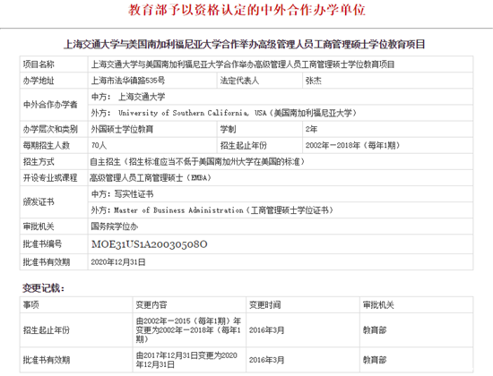 7、上海交通大學(xué)-南加利福尼亞大學(xué)合作EMBA項目