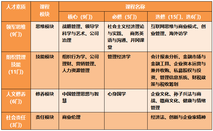案例教學(xué)演繹實(shí)戰(zhàn),情景體驗(yàn)提升技能,人文課堂修身養(yǎng)性,向上向善傳遞社會責(zé)任。課程模塊、課堂、方式和師資相輔相成,突出全面管理能力和素質(zhì)的提升,致力培養(yǎng)具有全球經(jīng)營理念的高層管理人才。