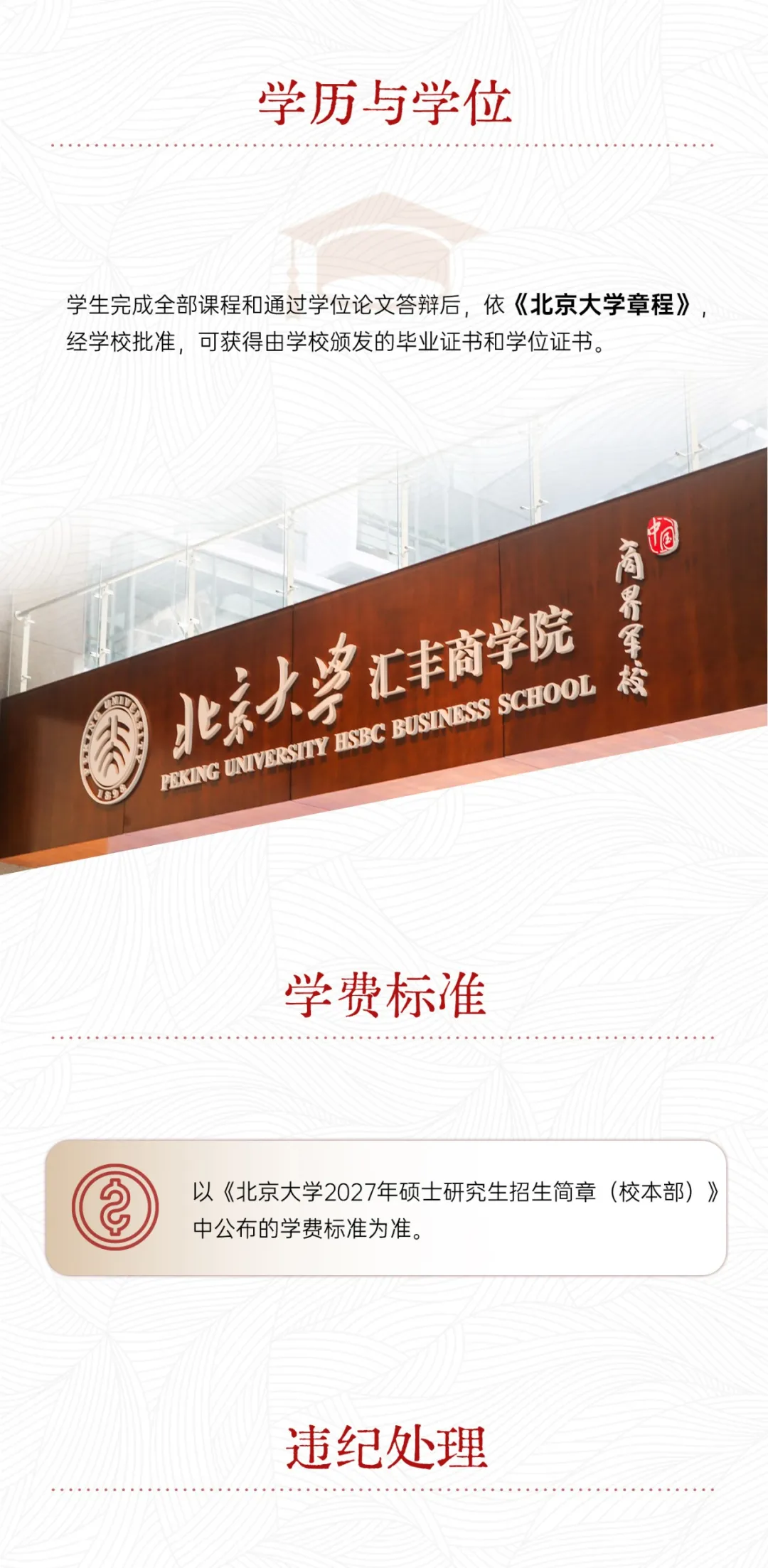 北京大學匯豐商學院創辦于2004年,是集教學、研究和社會服務于一體的學院,由時任北京大學副校長海聞教授擔任創院院長。2008年8月,匯豐銀行捐資支持北京大學建設世界一流商學院,正式冠名為"北京大學匯豐商學院"。學院的目標是建設國際化的教學環境,致力于經濟、金融、管理、財經傳媒的前沿學術研究,建設一流的"商界軍校",培養有領導力、有自制力、有遠大視野的商界與各界領袖。