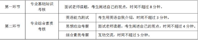 專業(yè)綜合素質(zhì)考核主要考察學(xué)生的外語(yǔ)交流能力、專業(yè)素質(zhì)及能力、思想品德、綜合素質(zhì)和能力。專業(yè)綜合素質(zhì)考核滿分100分。
