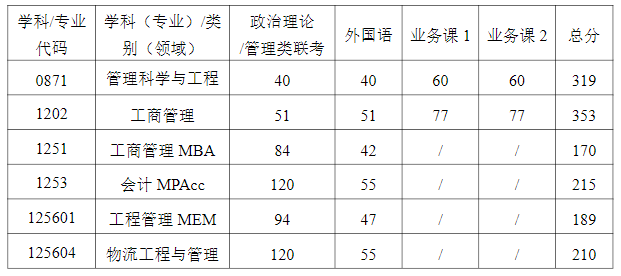 1.專業知識(40分)各專業具體考核內容及知識范圍如下:各專業具體考核內容涉及到考核知識范圍內的應知應會專業基礎理論知識,包括基本概念、基本原理、基本方法、主要內容、影響因素、特學科專業代碼學科專業名稱學習形式(全日制/非全日制)已接收推免生擬招生計劃0871管理科學與工程全日制7250871管理科學與工程非全日制—41202工商管理全日制11141251工商管理MBA非全日制—841253會計MPAcc全日制—80125601工程管理MEM非全日制—30125604物流工程與管理全日制—103點、分類、學派代表人物及其貢獻等。管理科學與工程學術學位考生考核統計學基本理論方法;工商管理學術學位考生考核企業管理基本理論知識;會計專業學位考生考核知識范圍包括會計學和財務管理學基本理論知識;工商管理、工程管理領域專業學位考生考核管理學基本理論知識;物流工程與管理領域專業學位考生考核統計學基本理論方法;單考計劃考生考核企業管理基本理論知識。