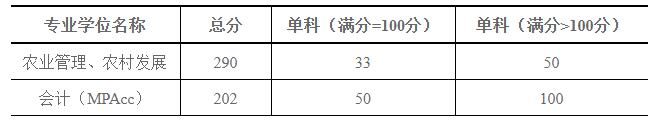 (2)農業管理、農村發展及會計(MPAcc)復試資格線為: