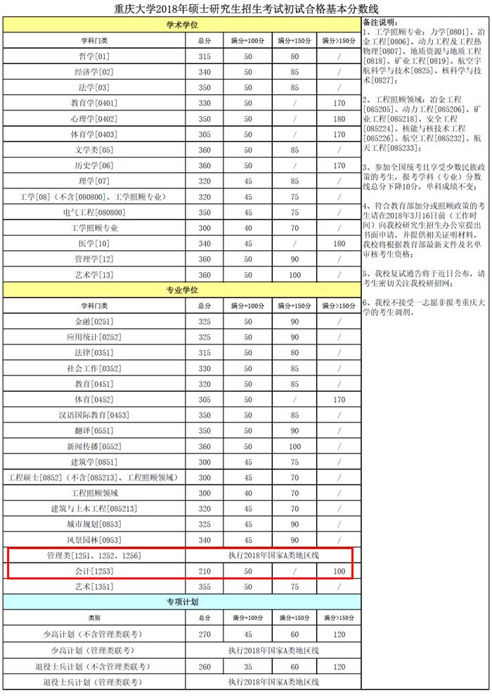 重慶大學(xué)2018年復(fù)試基本分?jǐn)?shù)線公布