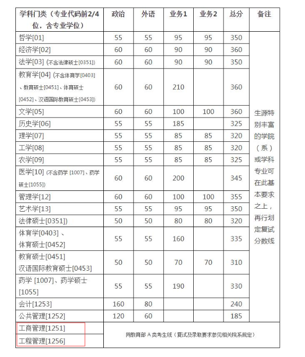 六、工程師學院單獨考試、公共管理學院公共管理碩士國家少數民族高層次骨干人才培養計劃(西藏定向班)復試分數線另行公布。