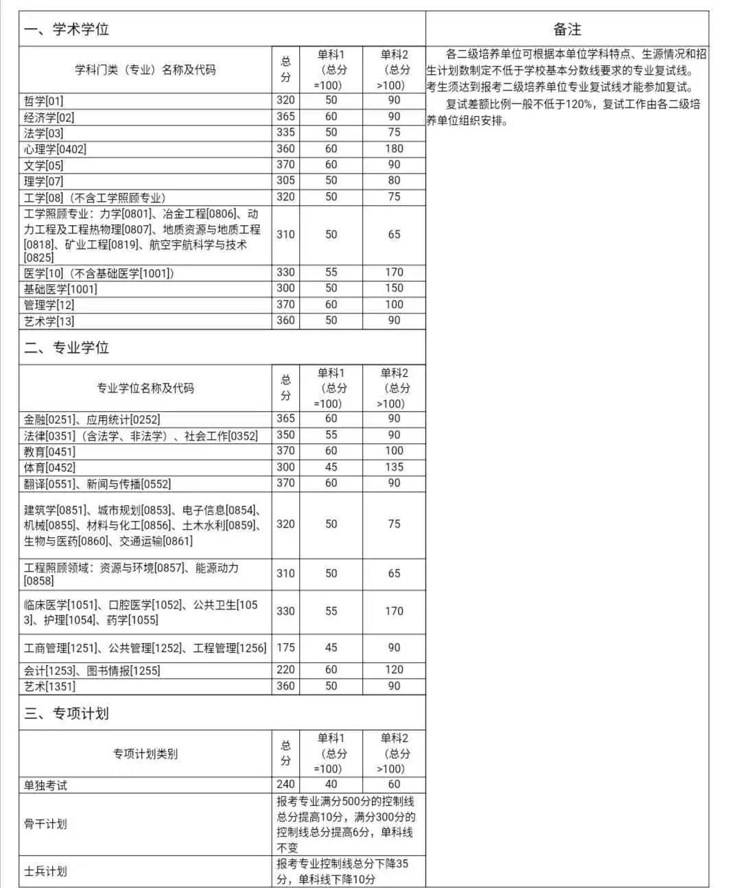 1.報考少數民族骨干計劃、士兵計劃、單獨考試以及通過綜合考核選拔的考生,達到學校基本分數線要求即可參加復試。