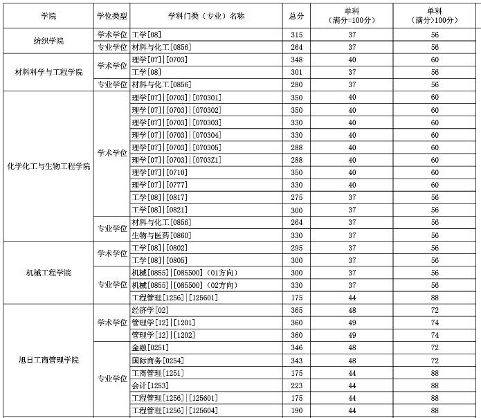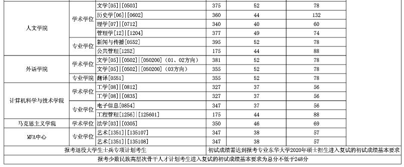 繼2020考研國家線公布后,34所自主劃線院校和各大院校也陸續公布2020年復試分數線。東華大學已經公布2020年碩士研究生入學考試復試基本分數線,如下所示: