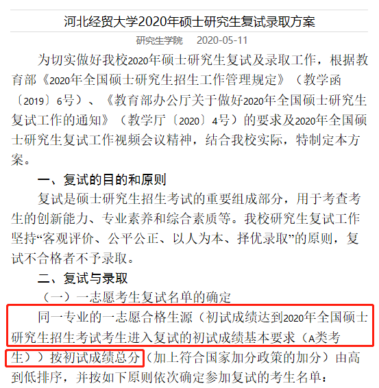河北經貿大學2020年MBA復試基本分數線:175/44/88
