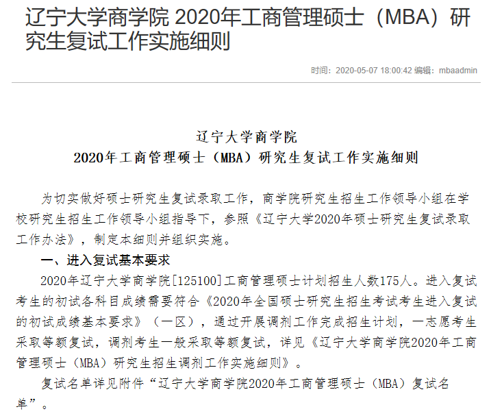 導(dǎo)讀:今天整理了“2020MBA分?jǐn)?shù)線:遼寧大學(xué)2020年MBA復(fù)試基本分?jǐn)?shù)線”的內(nèi)容,希望對大家有所幫助!