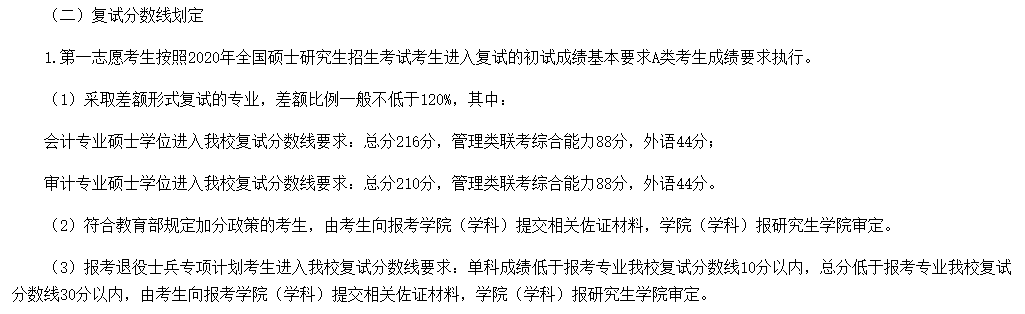 哈爾濱商業大學2020年MBA復試基本分數線:175/44/88