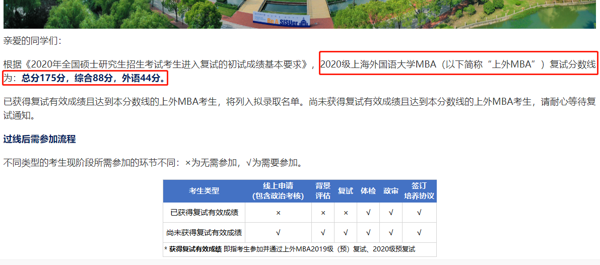 導(dǎo)讀:今天整理了“2020MBA分?jǐn)?shù)線:上海外國(guó)語(yǔ)大學(xué)2020年MBA復(fù)試基本分?jǐn)?shù)線”的內(nèi)容,希望對(duì)大家有所幫助!