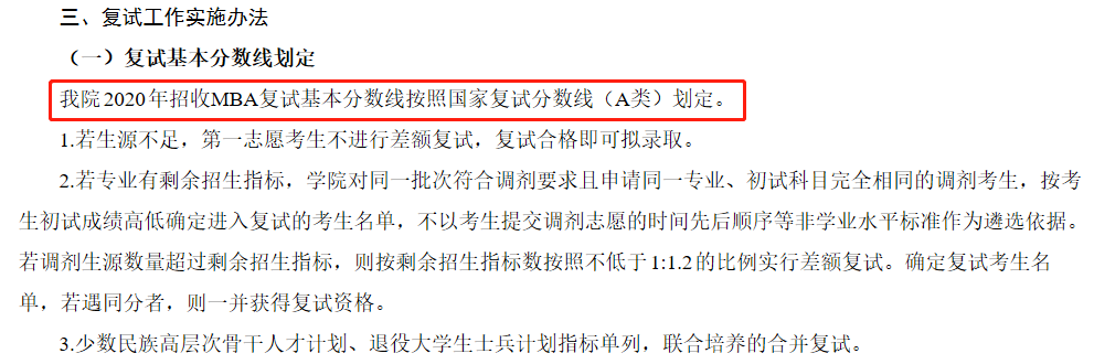 福建農林大學2020年MBA復試基本分數線:175/44/88