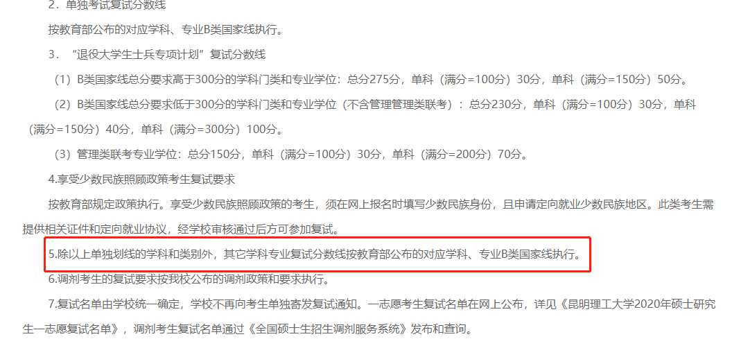 昆明理工大學2020年MBA復試基本分數線:165/39/78