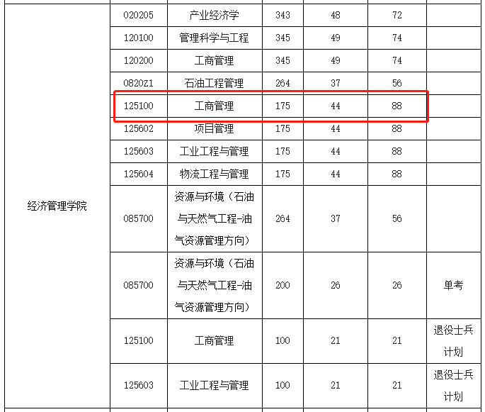 西南石油大學2020年MBA復試基本分數線:175/44/88