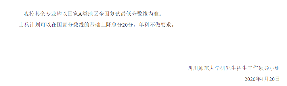四川師范大學2020年MBA復試基本分數線:175/44/88