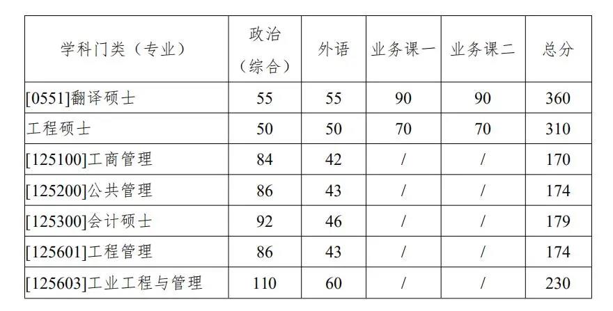 新聞速遞:MBA34所自主劃線院校復試分數線