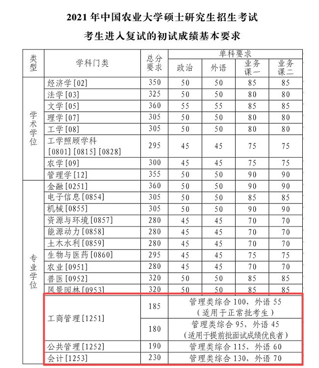 導讀:眾所周知,2021考研成績公布后,考研國家線、報考院校分數線是考生關注重點。2021考研國家線已于3月12日公布,34所自主劃線院校復試分數線也陸續公布。今天小編整理了“2021管理類聯考(MBA MPA MEM MPAcc MLIS MAud MTA)34所自主劃線院校分數線:中國農業大學2021考研復試分數線”的內容,各位考生了解一下~