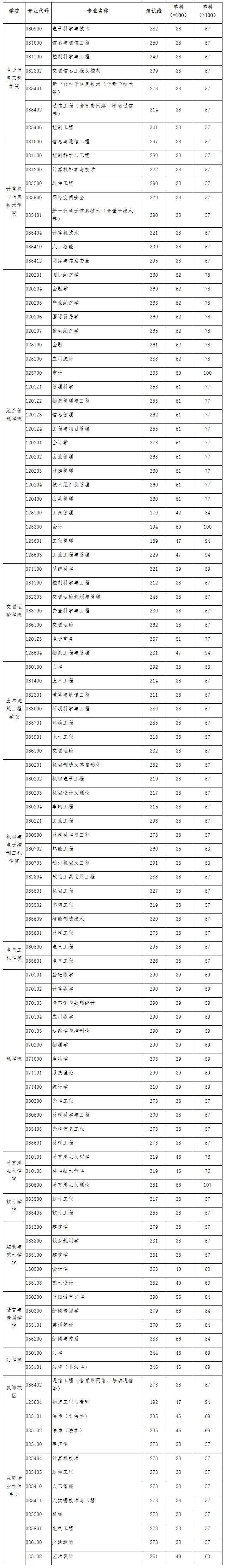 根據《2022年全國碩士研究生招生考試考生進入復試的初試成績基本要求》,綜合考慮生源情況、招生計劃、學科專業特點和復試考核工作需要等,經學校研究生招生工作領導小組同意,我校2022年碩士研究生招生復試分數線如下: