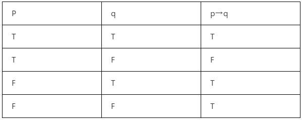 在形式邏輯中,我們學習到復合命題時,有一種命題叫做假言命題,其形式為p→q,真值表形式如下: