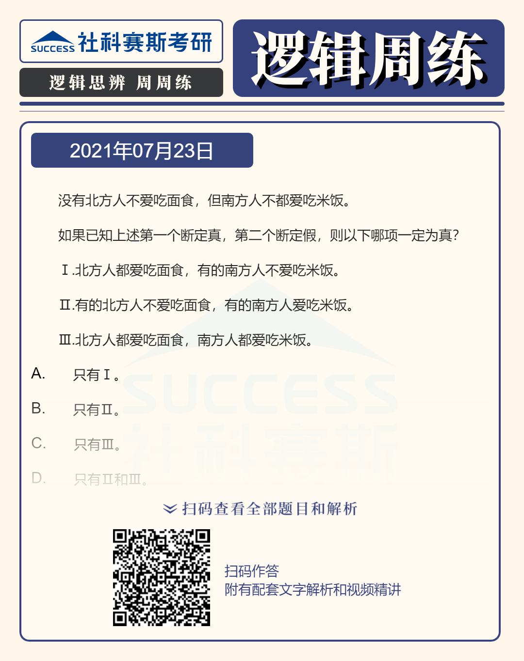 以上就是“2022MBA邏輯:2022MBA聯考邏輯習題及答案解析(7月23日)”的全部內容,更多邏輯精選習題,請持續關注社科賽斯MBA備考網!
