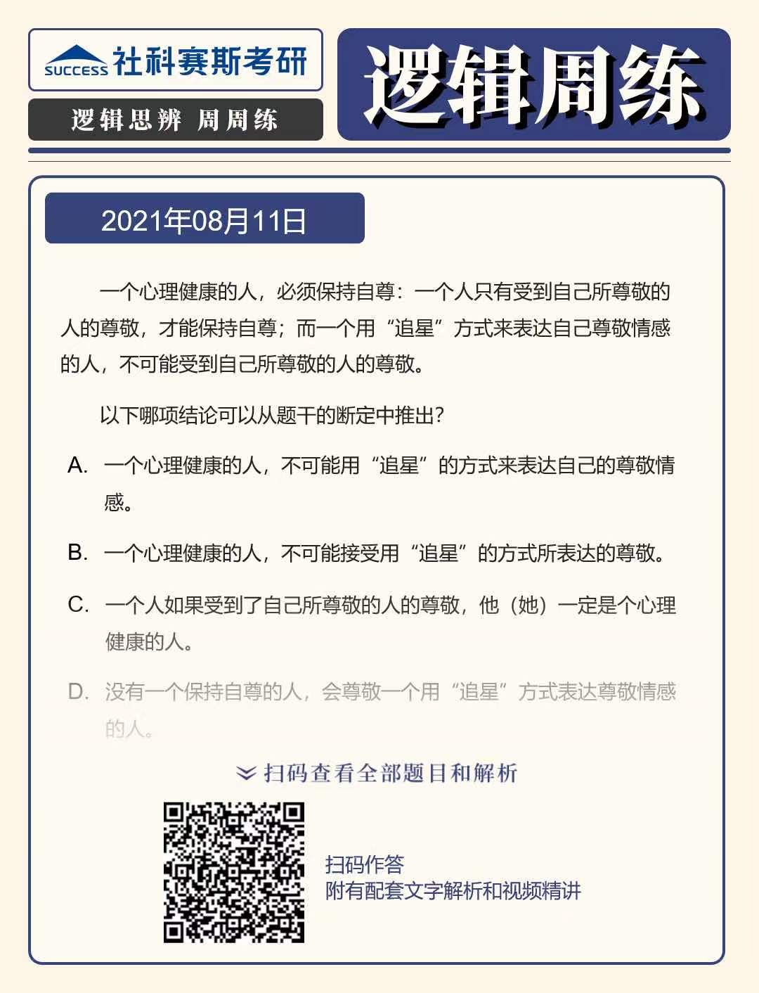 以上就是“2022MBA邏輯:2022MBA聯考邏輯習題及答案解析(8月11日)”的全部內容,更多邏輯精選習題,請持續關注社科賽斯MBA備考網!