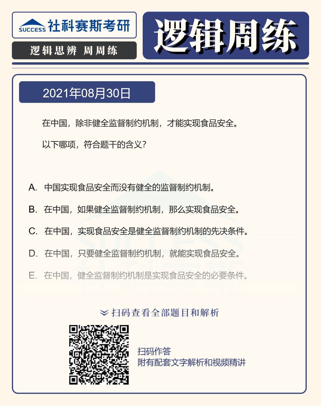 以上就是“2022MBA邏輯:2022MBA聯考邏輯習題及答案解析(8月30日)”的全部內容,更多邏輯精選習題,請持續關注社科賽斯MBA備考網!